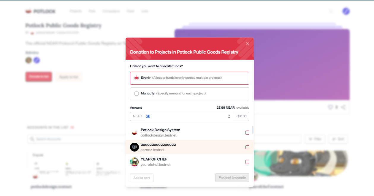 - Enter Total Amount: Specify a total donation amount that you would like to distribute evenly among the selected projects.