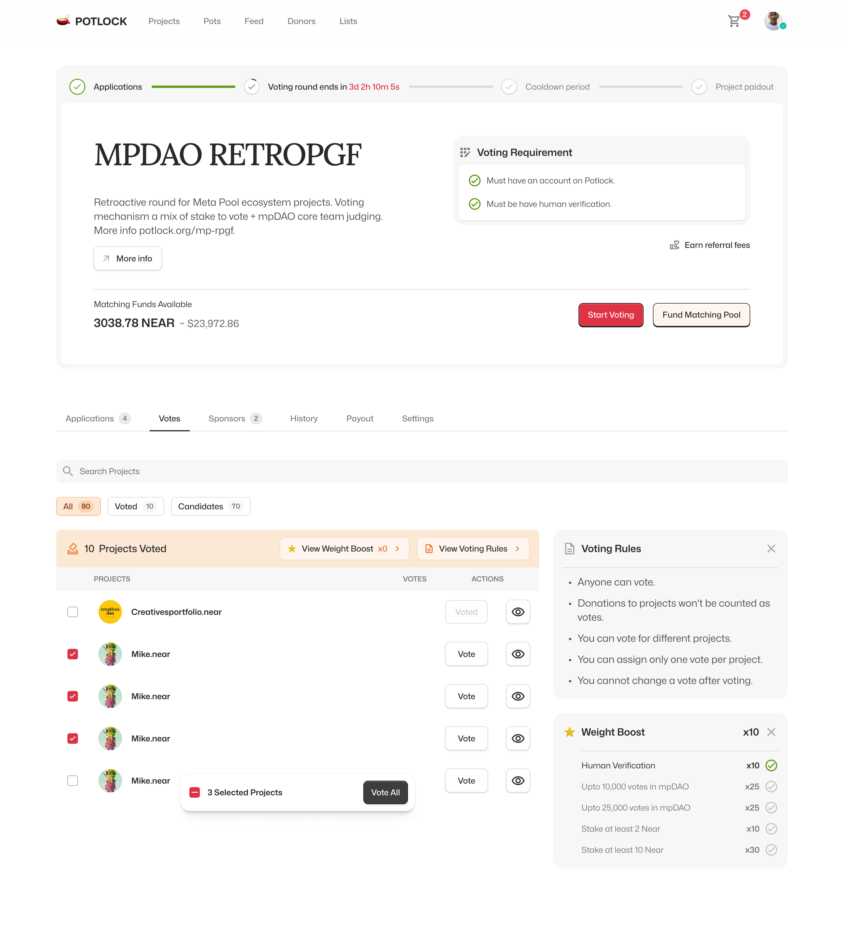 - Register on POTLOCK: All participants must create or log into their POTLOCK account. This is essential for accessing the voting platform.